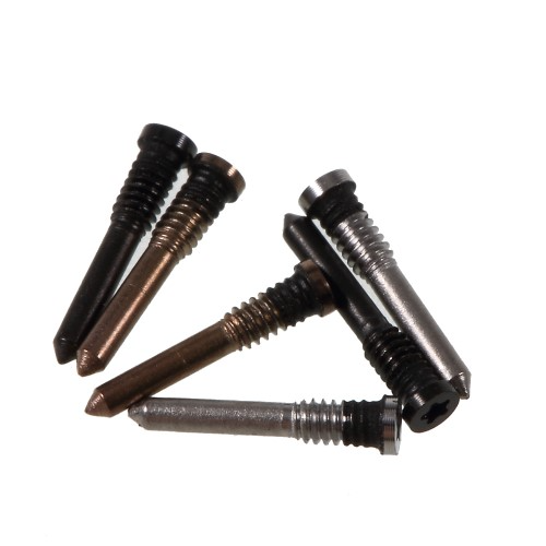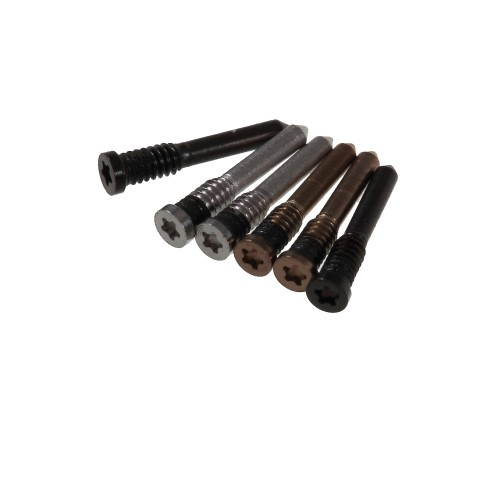 Komplett skruvset till iPhone XS. Innehåller 2 st bottenskruvar i guld färg för laddkontakten. Reservdelen är tredjepartstillverkad.