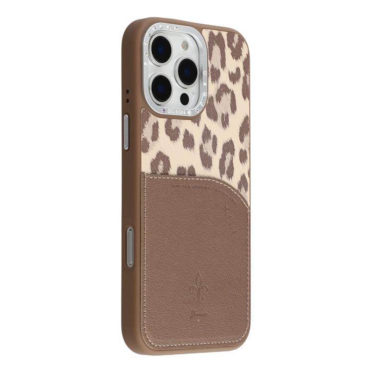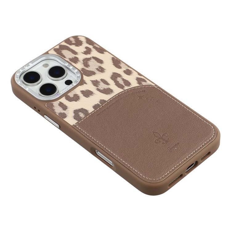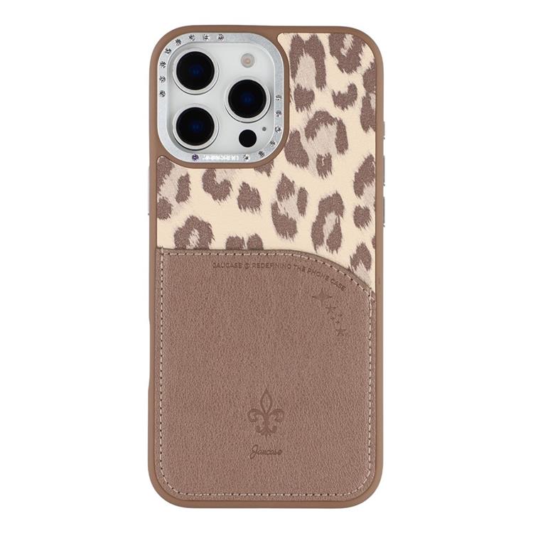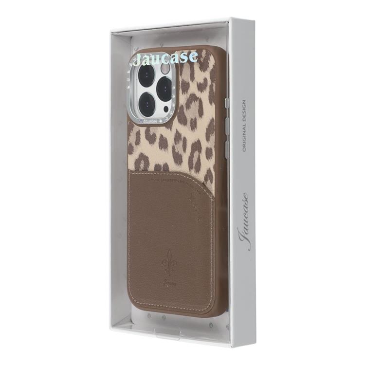 JAUCASE iPhone 16 Pro Max Mobilskal MagSafe korthållare Leopard Print PU Läder + TPU - Brun