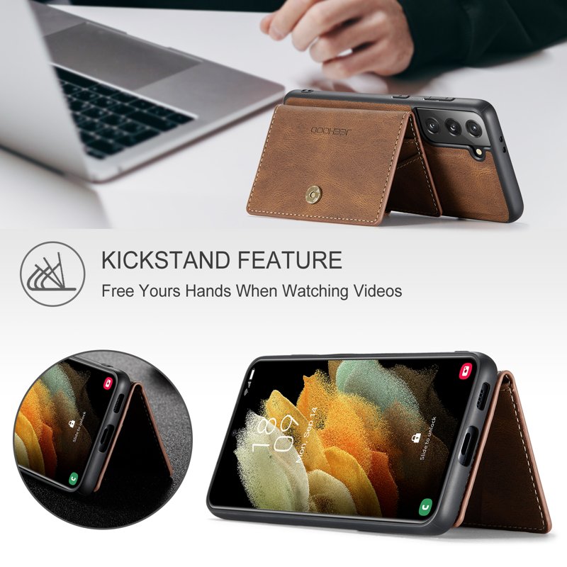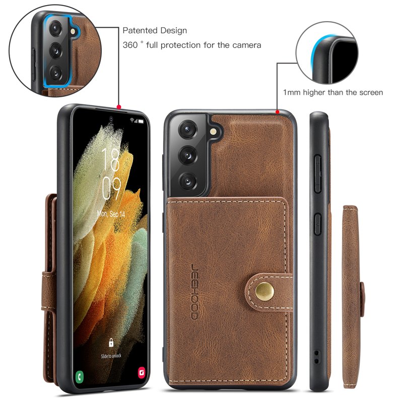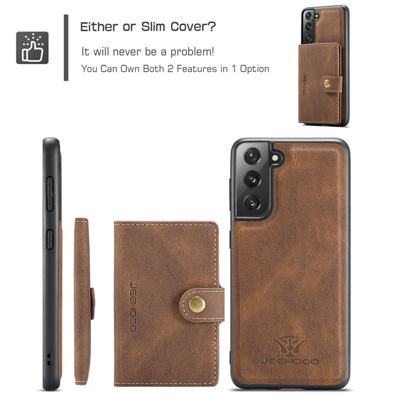 Handla denna produkt JEEHOOD Detachable Wallet Mobilskal för Samsung Galaxy S22 5G - Brun