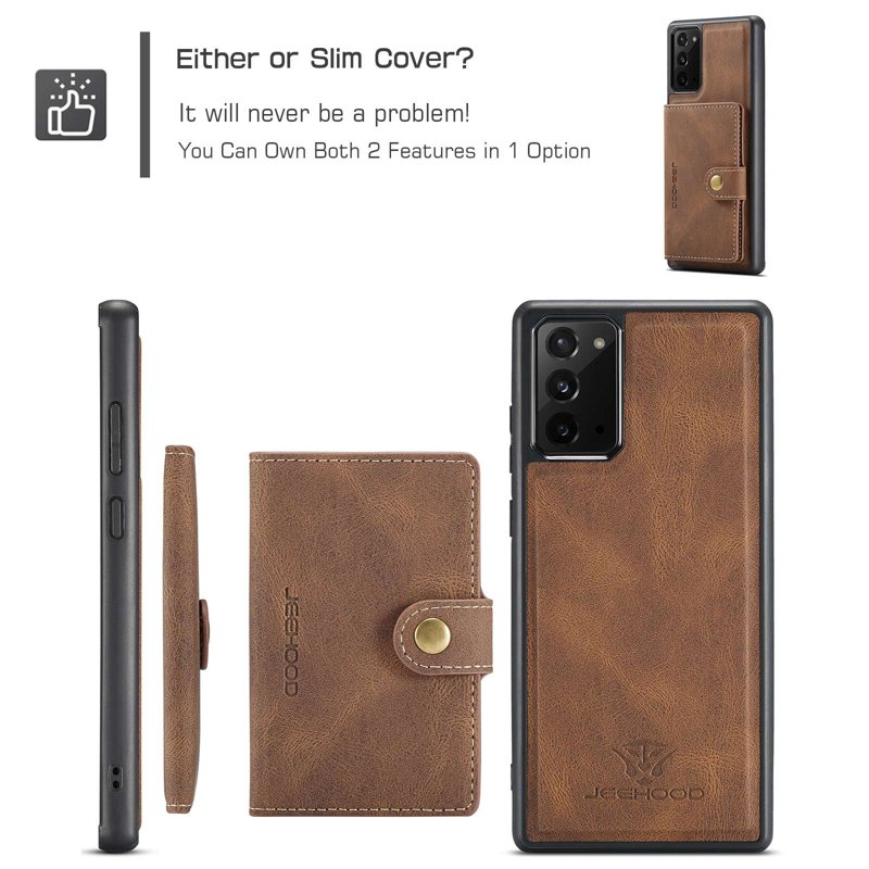 Detta fodral erbjuder en smart två-i-ett-design med en avtagbar läderplånbok och ett TPU-baksidan. Plånboken fästs magnetiskt, vilket gör det enkelt att bära med sig ID, kreditkort och kontanter tillsammans med din telefon. Slipp det tunga plånboksbytet.