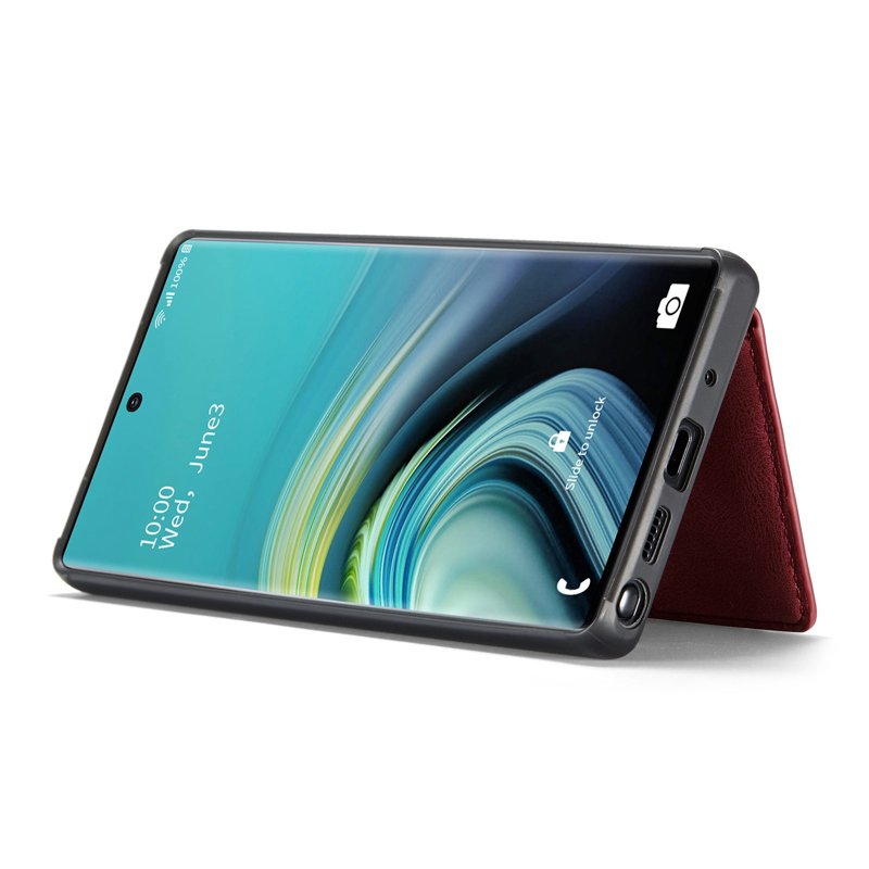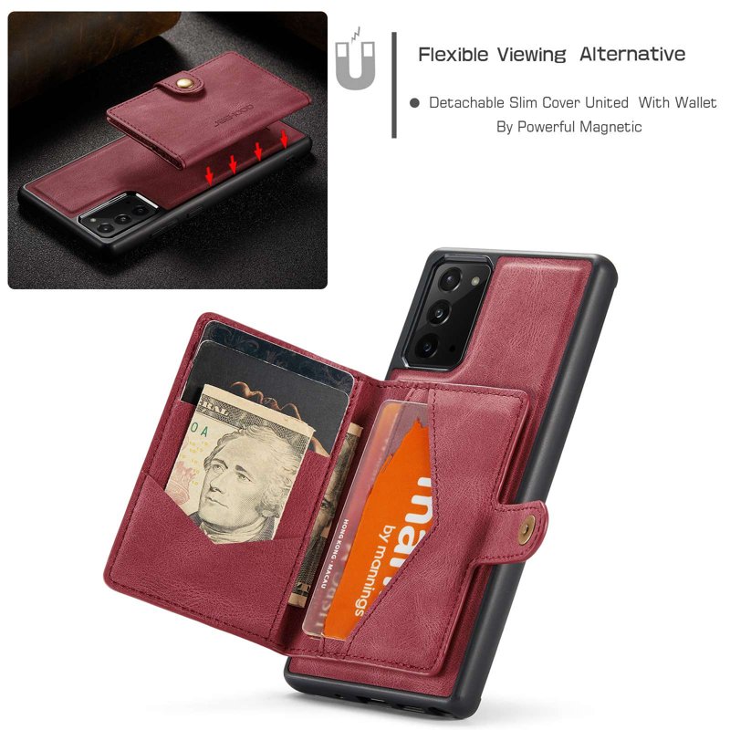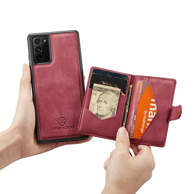 Detta fodral erbjuder en smart två-i-ett-design med en avtagbar läderplånbok och ett TPU-baksida. Plånboken fästs magnetiskt, vilket gör det enkelt att bära med sig ID, kreditkort och kontanter tillsammans med din telefon. Slipp det tunga plånboksbytet.