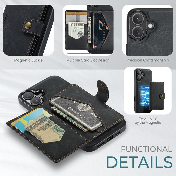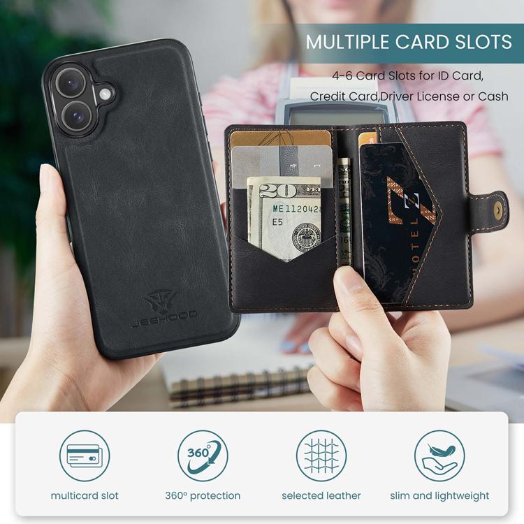 JEEHOOD iPhone 17 Mobilskal KonstLäder + Plast Avtagbar - Svart