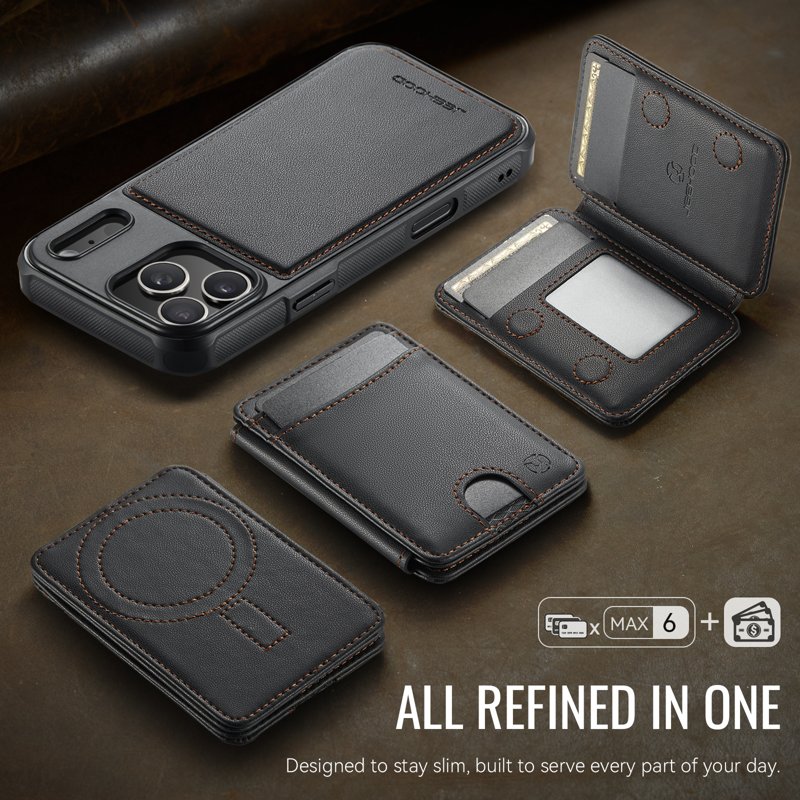 Upptäck vår praktiska korthållare med kickstand, designad för att förenkla din vardag. Med flera kortfack och RFID-skydd håller den dina kort säkra och organiserade. Den är kompatibel med MagSafe och erbjuder en hållbar konstruktion för långvarig användning. Perfekt för både arbete och nöje.