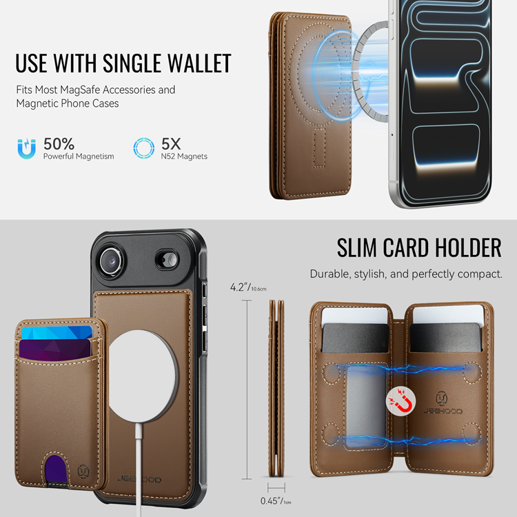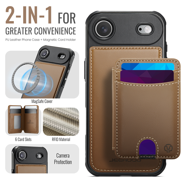 JEEHOOD iPhone Air Mobilskal MagSafe Detachable Korthållare Kickstand Läder - Brun