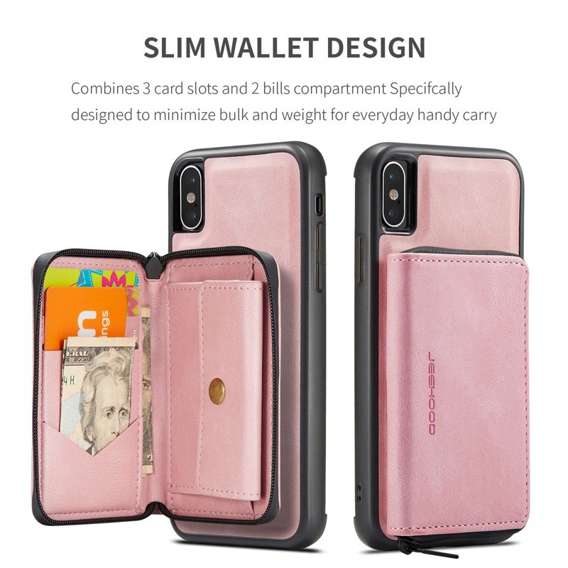 Detta mobilfodral kombinerar stil och funktionalitet. Med en läderplånbok som fästs med stark magnet kan du använda fodralet och plånboken separat. Trots sin kompakta design har den stor kapacitet med tre kortfack och två sedelfack. Fodralet är tillverkat av TPU och premium PU-läder, vilket gör det både chic och hållbart.