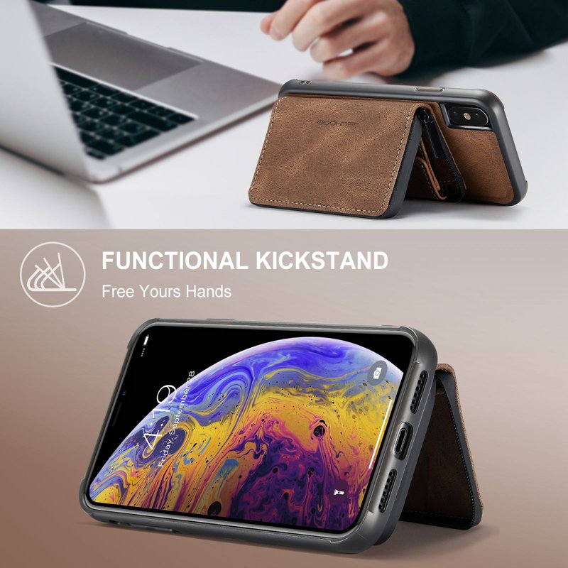 Detta mobilfodral kombinerar stil och funktionalitet. Med en läderplånbok som fästs magnetiskt kan du använda dem separat. Trots sin kompakta design har plånboken stor kapacitet med tre kortfack och två sedelfack. Fodralet är tillverkat av TPU och premium PU-läder, vilket gör det både chic och hållbart. Trådlös laddning påverkas inte av fodralet.