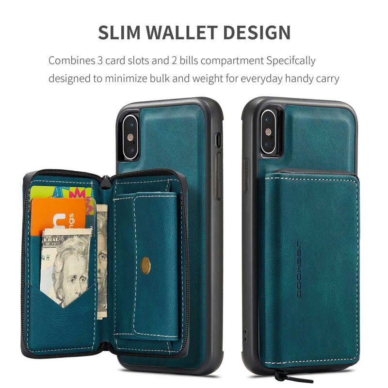 - Säker stängning: Dragkedja som håller dina kort och kontanter säkra.