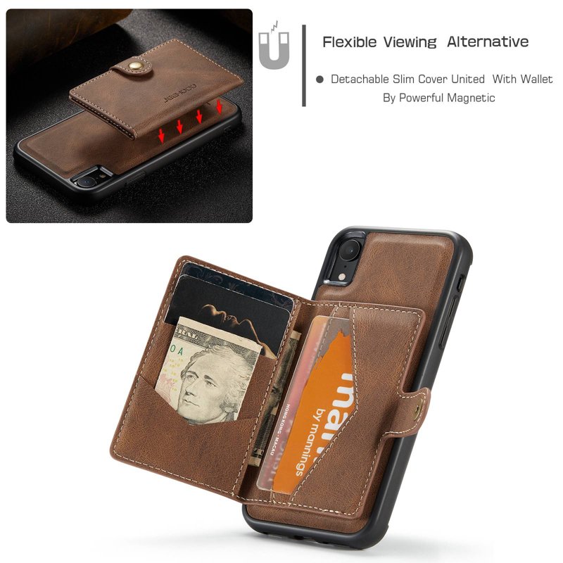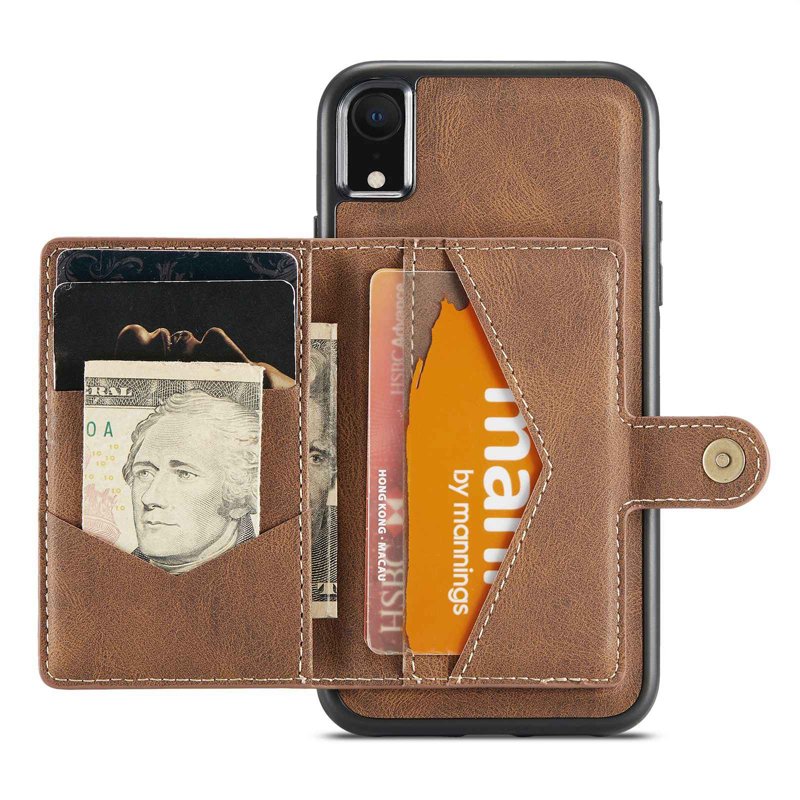 JEEHOOD iPhone XR Fodral med Ställ och Magnetisk Läder - Brun