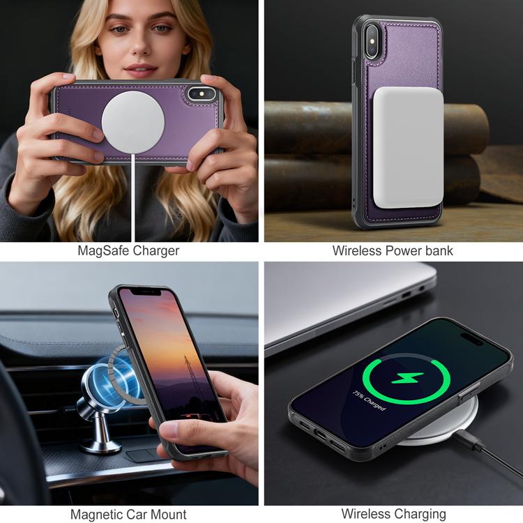 JEEHOOD Mobilskal till iPhone XS Max MagSafe Läder med Kortfack - Lila