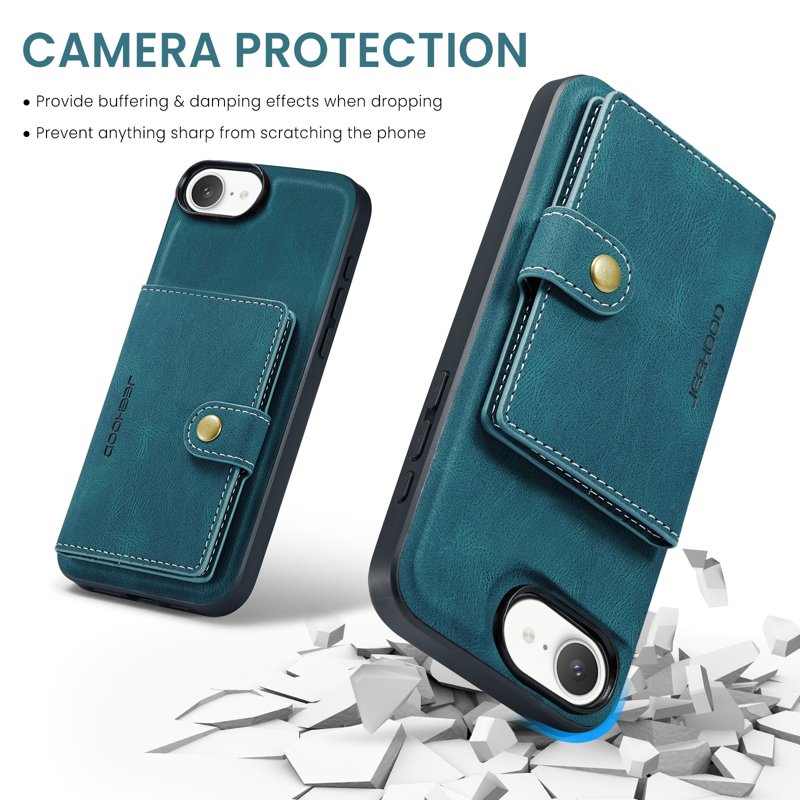 Detta fodral erbjuder en innovativ design med en avtagbar magnetisk korthållare och telefonfodral. Du kan enkelt fästa eller ta bort dem, vilket ger dig flexibilitet och funktionalitet. Perfekt för den moderna användaren som vill ha allt samlat på ett ställe.