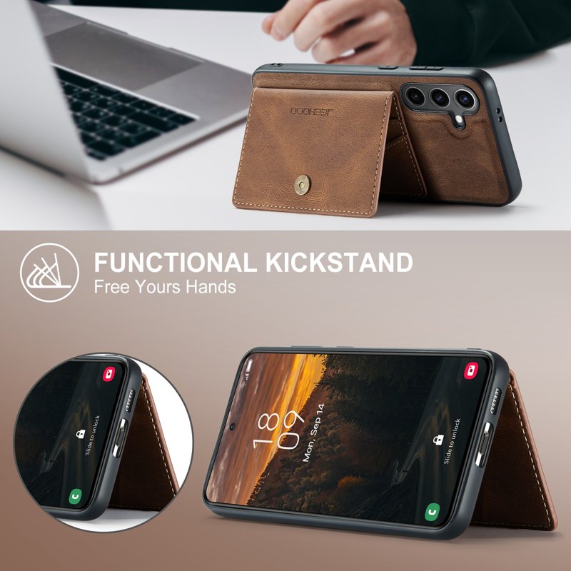 Upptäck vår 2-i-1 magnetiska mobilskal med avtagbar korthållare. Detta skal erbjuder en smart och flexibel lösning för din smartphone. Med flera kortfack och en stabil kickstand är det perfekt för både arbete och nöje. Njut av enkel trådlös laddning med MagSafe och skydda din kamera med stil.