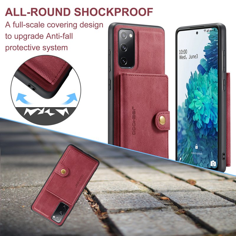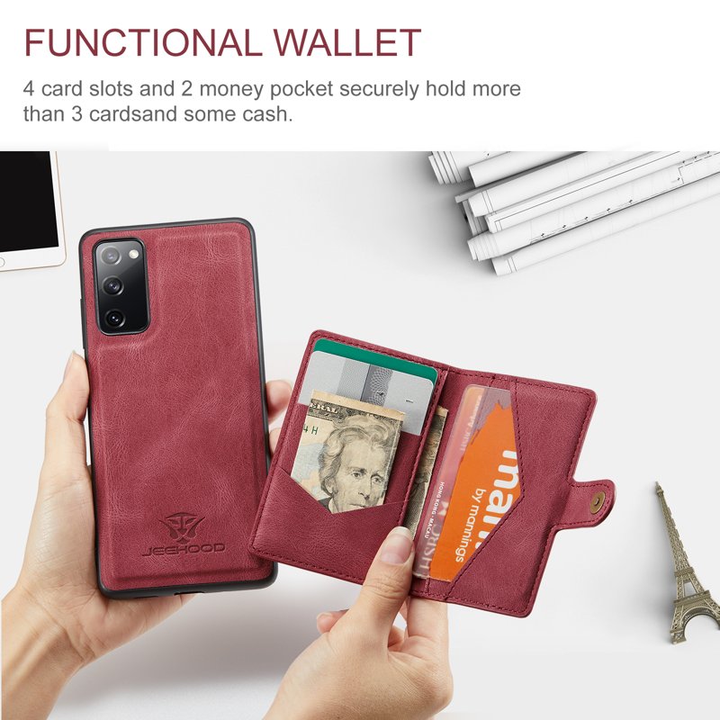 Handla denna produkt JEEHOOD Samsung Galaxy S20 FE 2022 Mobilskal Äkta Läder - Röd