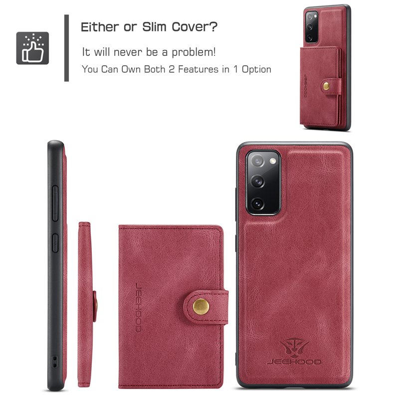 JEEHOOD Samsung Galaxy S20 FE 2022 Mobilskal Äkta Läder - Röd