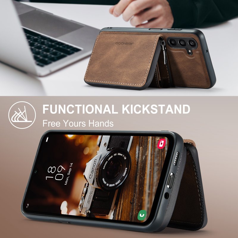 Detta fodral erbjuder en innovativ magnetisk avtagbar design. Det inkluderar en avtagbar korthållare och telefonfodral som enkelt kan sättas ihop eller tas isär. Perfekt för dig som vill ha flexibilitet och funktionalitet i ett och samma fodral.