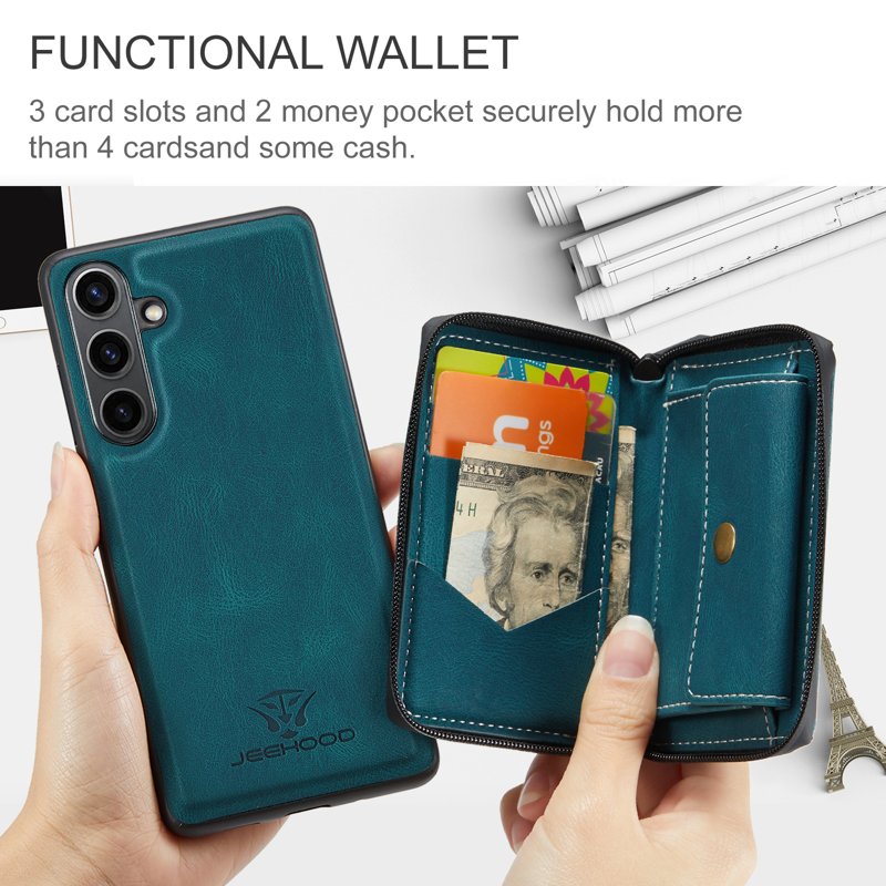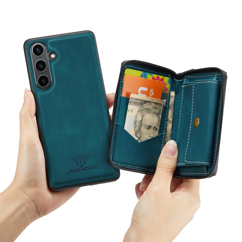 Detta mobilfodral kombinerar stil och funktionalitet. Med en läderplånbok som fästs magnetiskt kan du använda dem tillsammans eller separat. Trots sin kompakta storlek rymmer plånboken tre kort och två sedelfack. Fodralet är både chic och hållbart, perfekt för dagligt bruk.