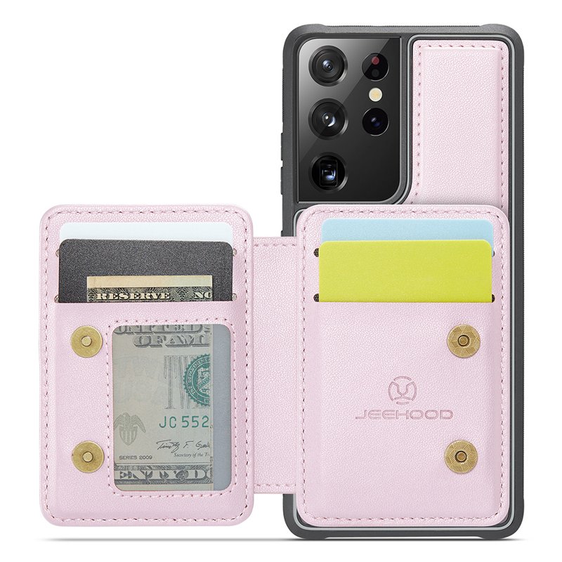 JEEHOOD J05 Fodral för Samsung Galaxy S21 Ultra 5G Läder Rosa