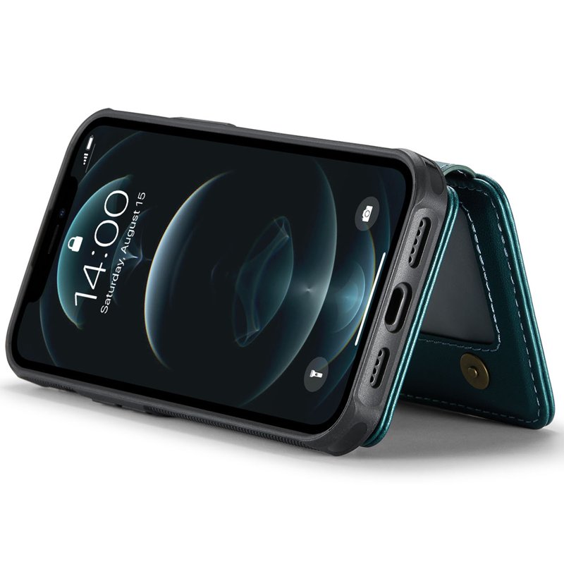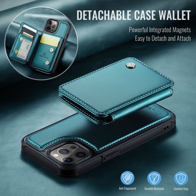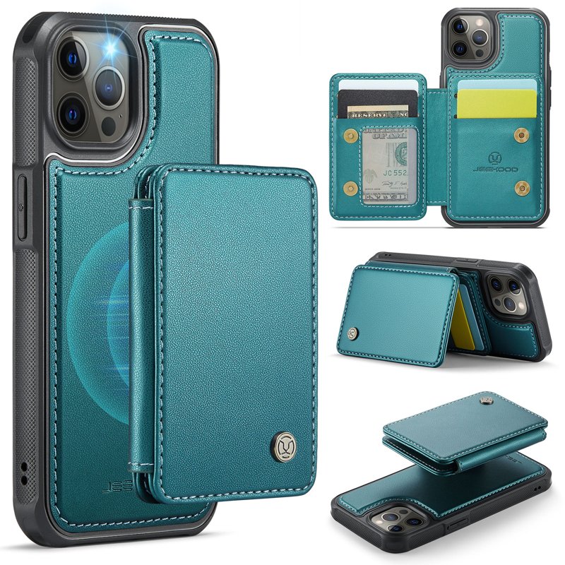 JEEHOOD J05 iPhone 12 Pro Max Skal Läder med Magnetficka Cyan