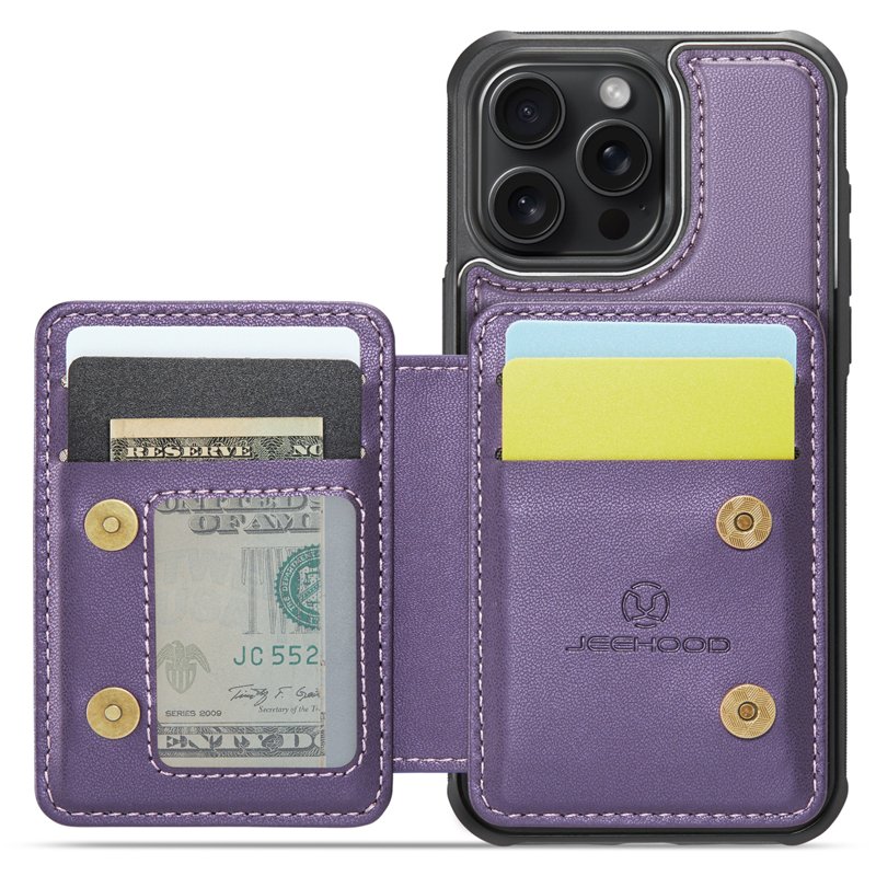 JEEHOOD J05 iPhone 15 Pro Max Skal Läder med Magnetficka - Lila