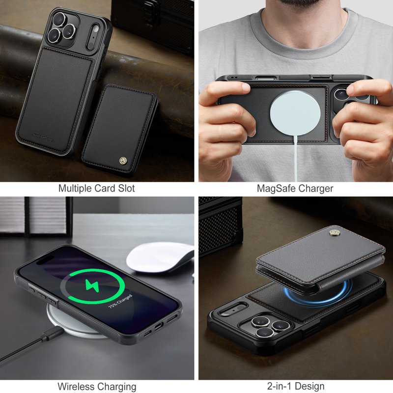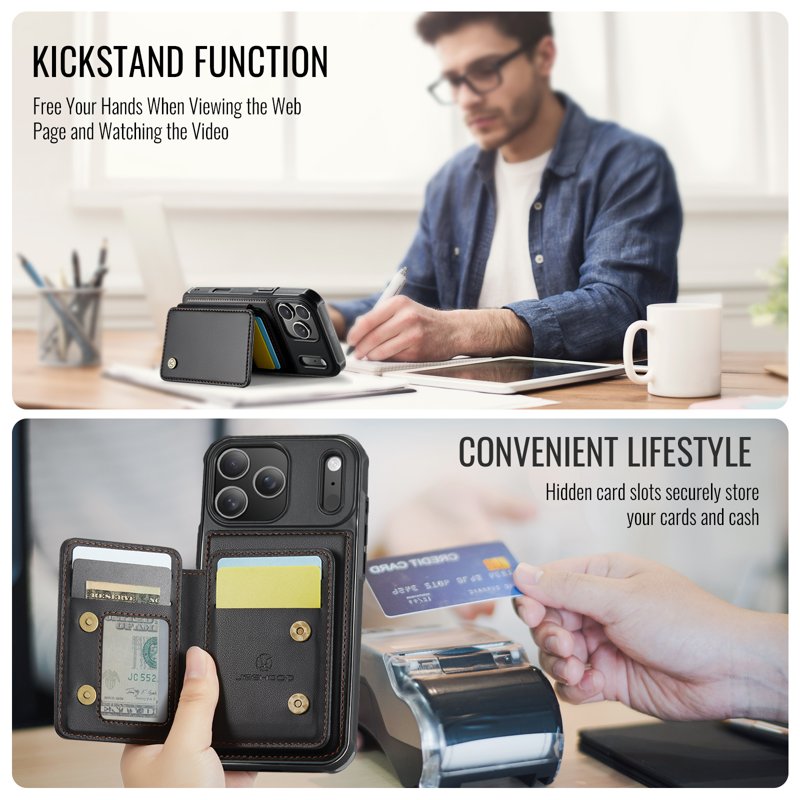 JEEHOOD J05 iPhone 17 Pro Max Skal Läder med Magnetficka - Svart