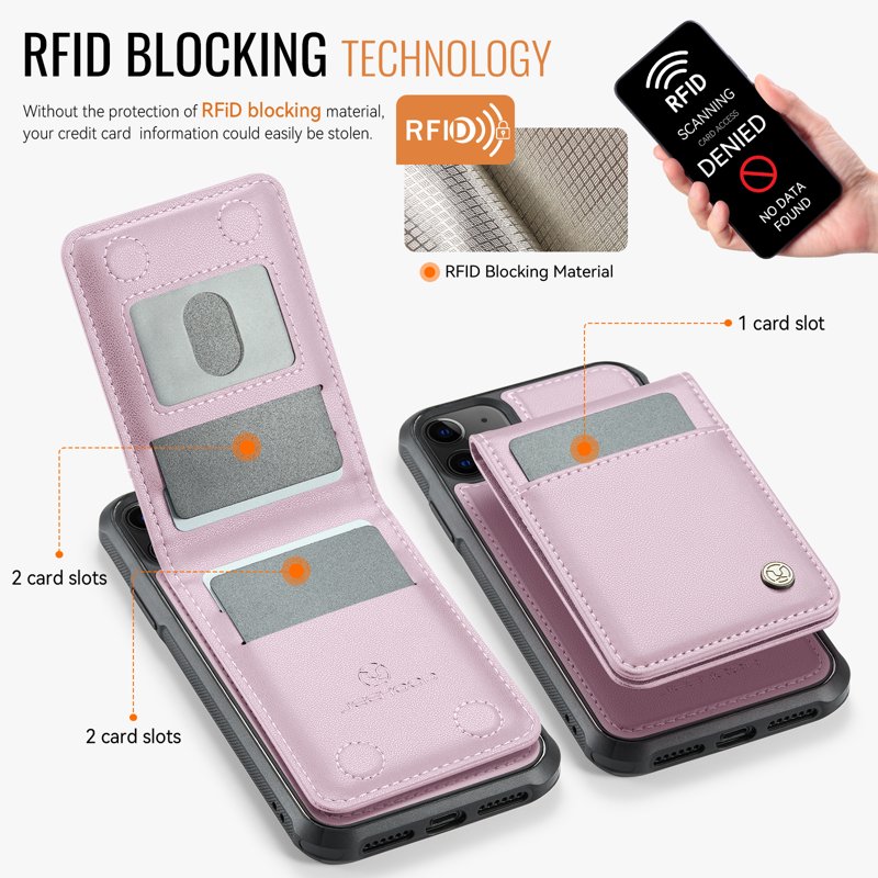 JEEHOOD J06 iPhone 11 Läderfodral MagSafe med kortfack - Rosa