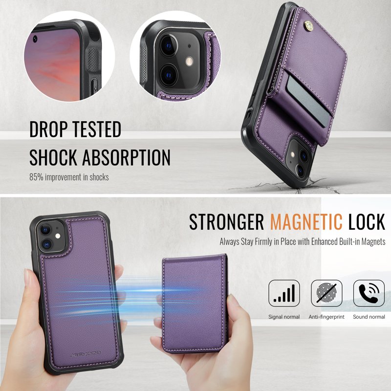 JEEHOOD J06 iPhone 11 Läderfodral MagSafe RFID Skydd Lila