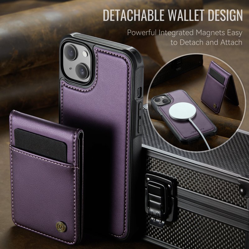 JEEHOOD J06 iPhone 14 Läderfodral MagSafe RFID Skydd Lila