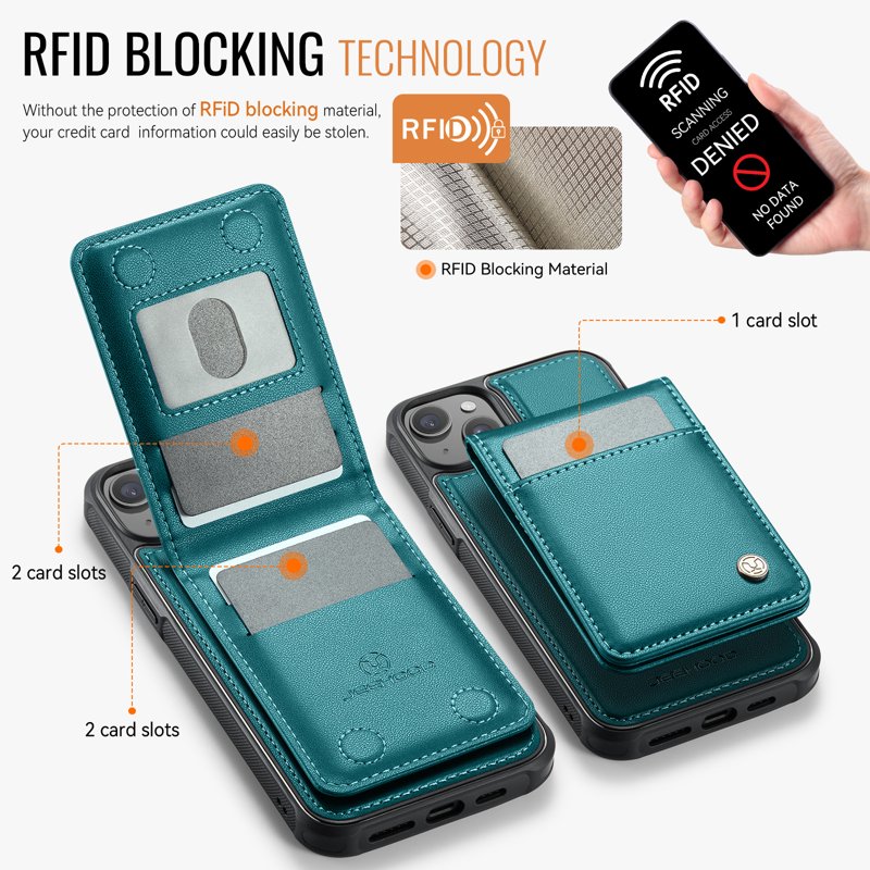 - 2-i-1 Avtagbar design - Kortfacket och telefonfodralet kan separeras och fästas magnetiskt. Detta ger mångsidig användning och bekväm funktionalitet.