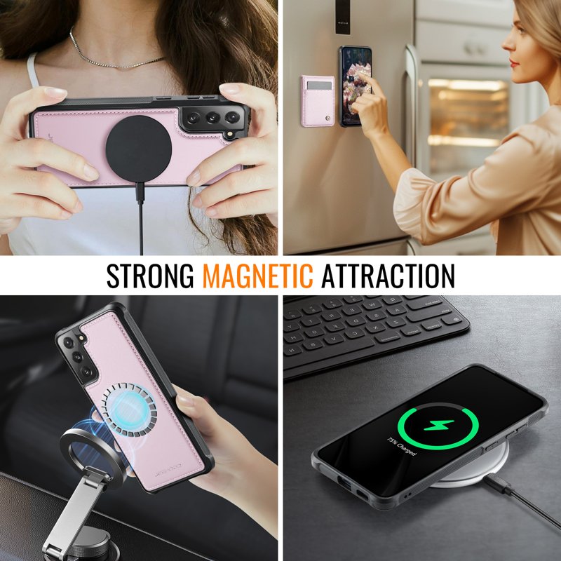 JEEHOOD J06 Läderfodral till Samsung Galaxy S21 4G - Rosa