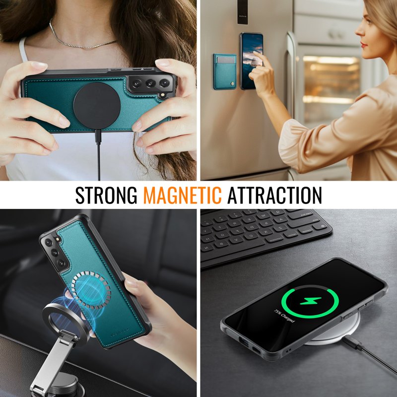 • 2-i-1 Avtagbar Design: Fodralet kan separeras från kortfickan och fästs magnetiskt. Detta ger mångsidig användning och bekväm funktionalitet.