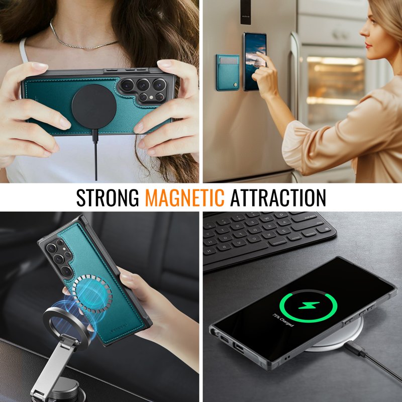 - 2-i-1 Avtagbar design: Kortfacket och telefonfodralet kan separeras och fästas magnetiskt. Detta ger mångsidig användning och bekväm funktionalitet.