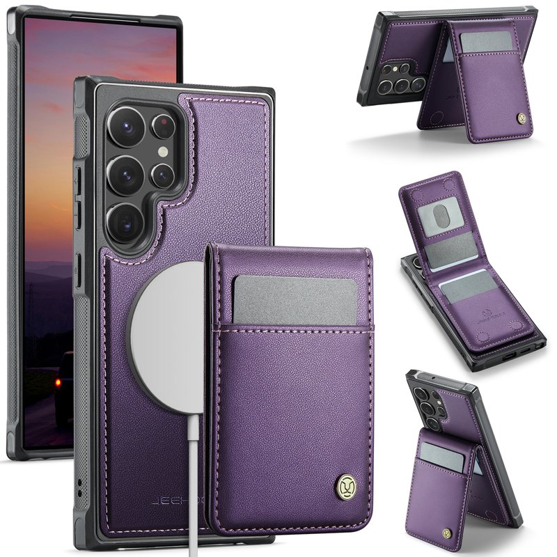 JEEHOOD J06 Läderfodral till Samsung Galaxy S22 Ultra 5G - Lila