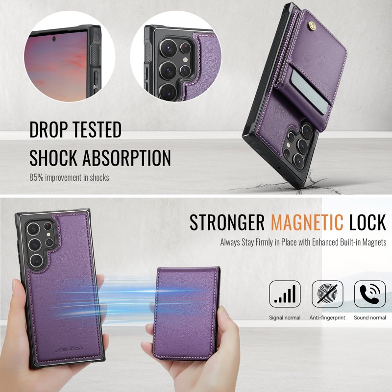 Handla denna produkt JEEHOOD J06 Läderfodral till Samsung Galaxy S22 Ultra 5G - Lila