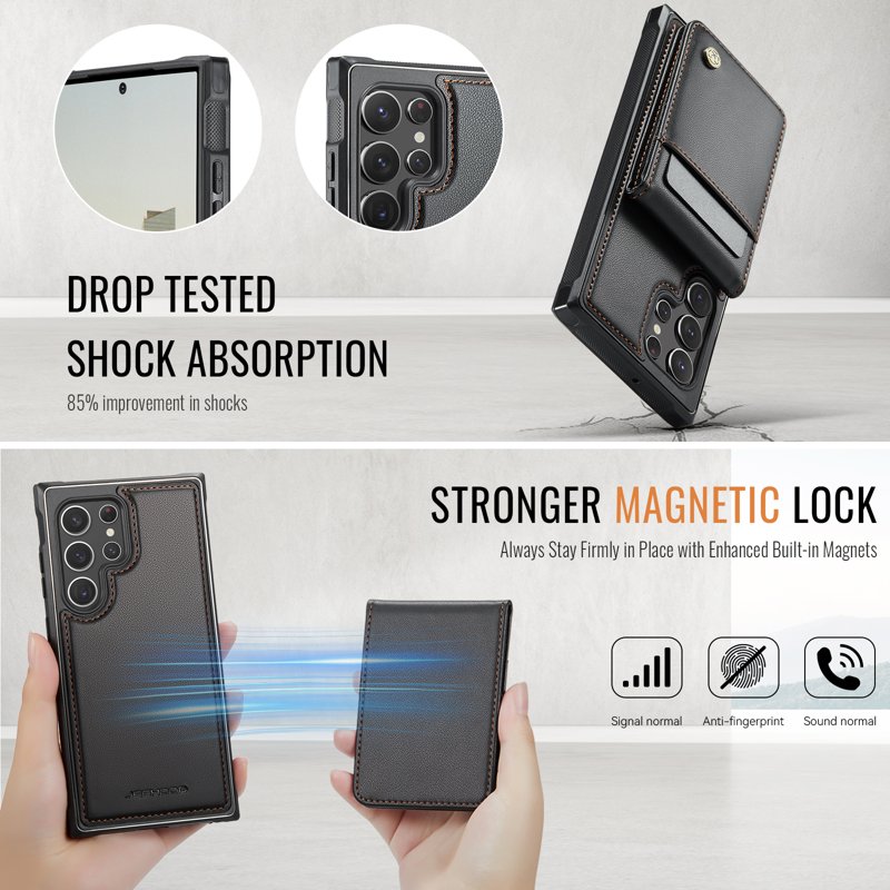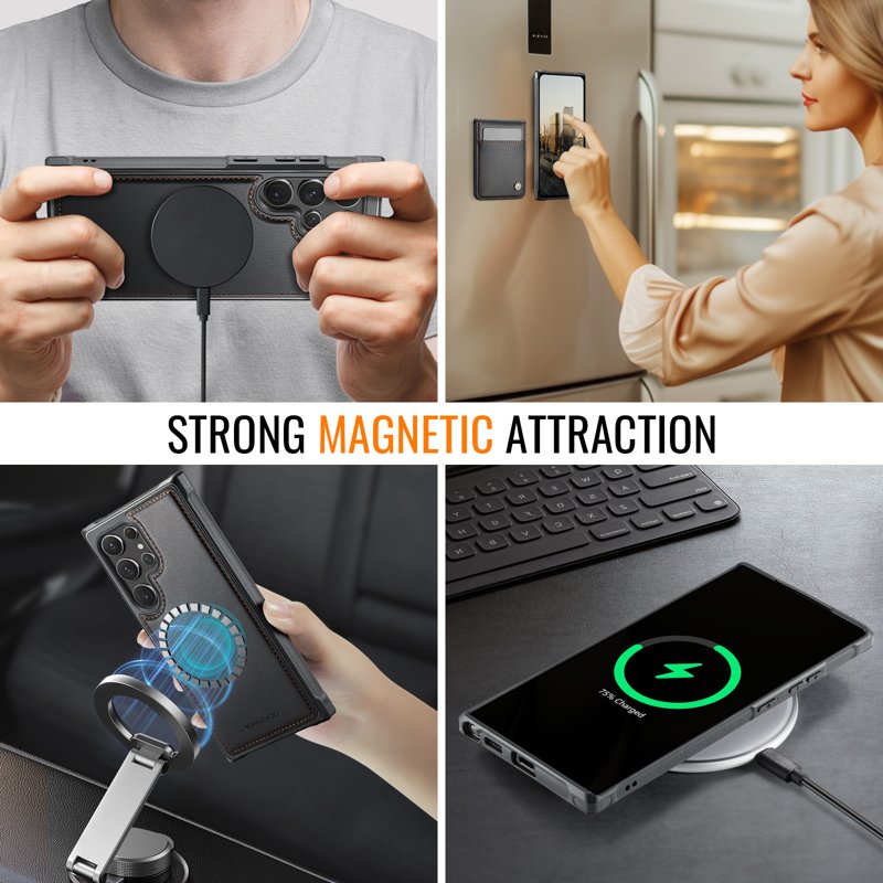 • 2-i-1 Avtagbar Design: Fodralet kan separeras från kortfickan och fästas magnetiskt. Detta ger mångsidig användning och bekväm funktionalitet.