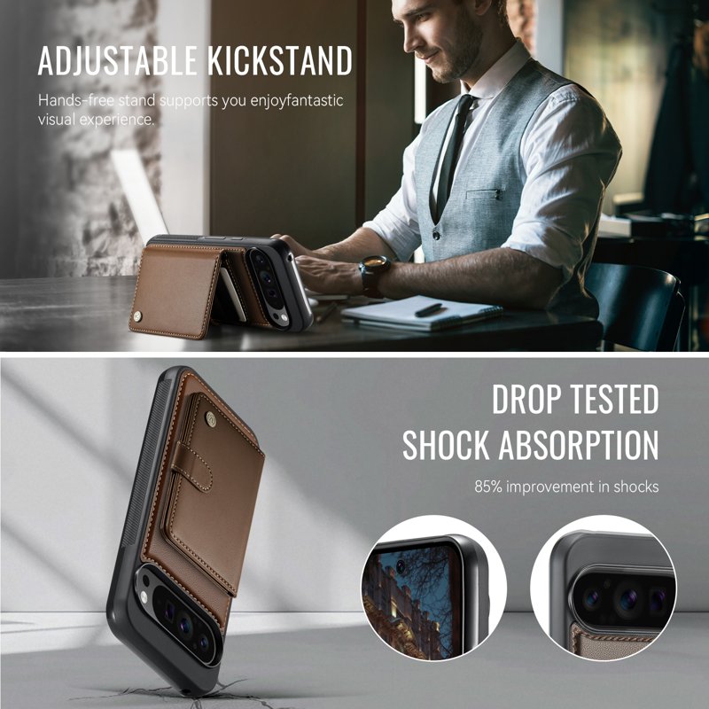 - Säker magnetisk spänne: Sidospännet ger extra säkerhet och håller dina kort och kontanter på plats.