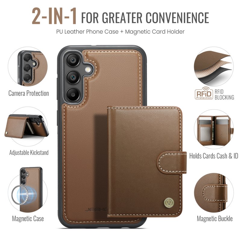 - Premium Hybridmaterial - Hållbart PC, stötdämpande TPU och elegant PU-läder ger ett perfekt skydd.
