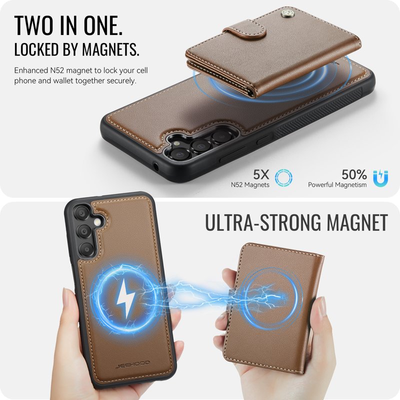 Detta plånboksfodral kombinerar stil och funktionalitet. Tillverkat av hållbart material erbjuder det skydd och elegans. Med smarta funktioner som RFID-skydd och MagSafe-kompatibilitet är det den perfekta lösningen för att hålla dina kort och kontanter organiserade.