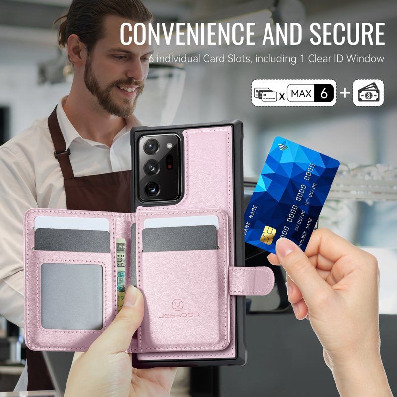 - Avtagbar kortplånbok: Den magnetiska plånboken kan enkelt tas bort från telefonfodralet för flexibel användning, samtidigt som den behåller en säker magnetisk koppling när den är fäst.