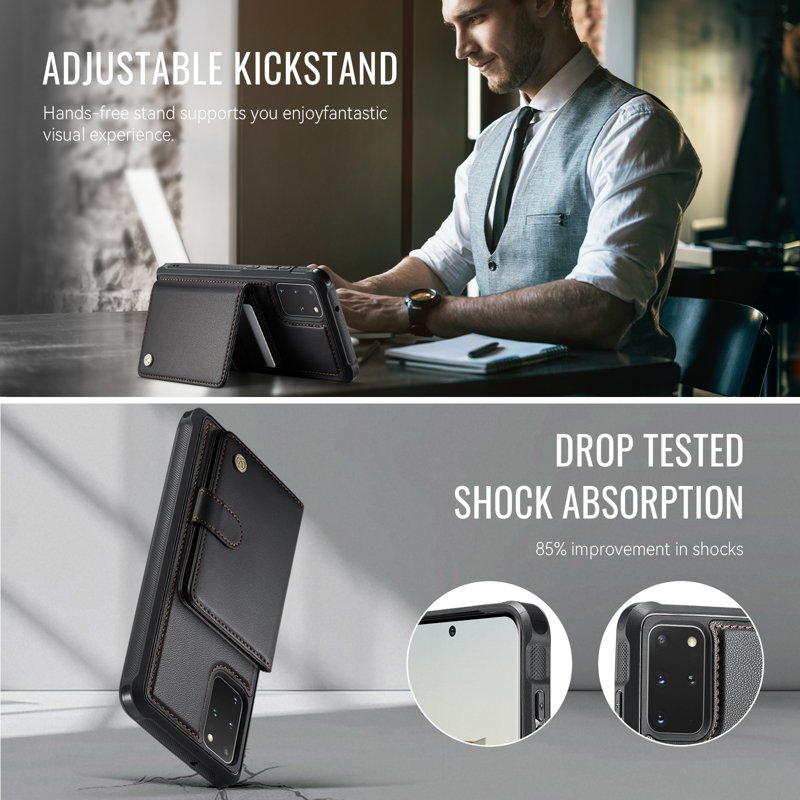 - Säker magnetisk spänne: Sidospännet håller dina kort och kontanter på plats under användning.
