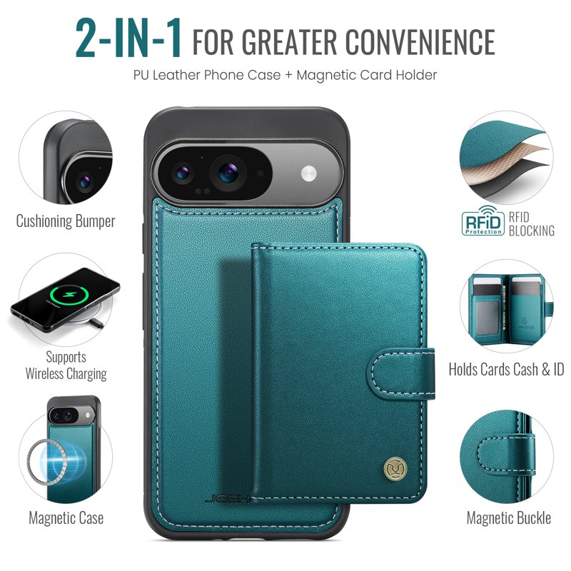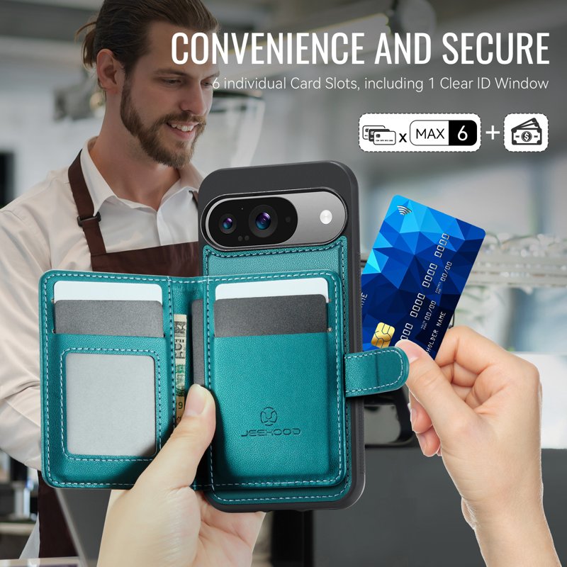 - Avtagbar Kortplånbok: Den magnetiska plånboken kan enkelt tas bort från fodralet för flexibel användning, samtidigt som den har en säker magnetisk anslutning när den är fäst.