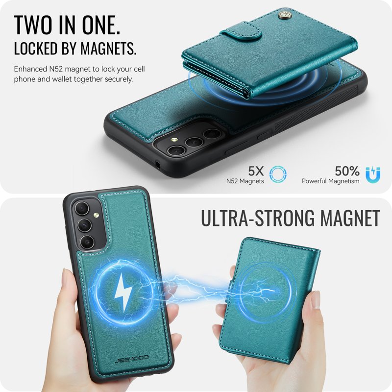 - Avtagbar kortplånbok - Den magnetiska plånboken kan enkelt tas bort från telefonfodralet för flexibel användning, samtidigt som den behåller en säker magnetisk koppling när den är fäst.