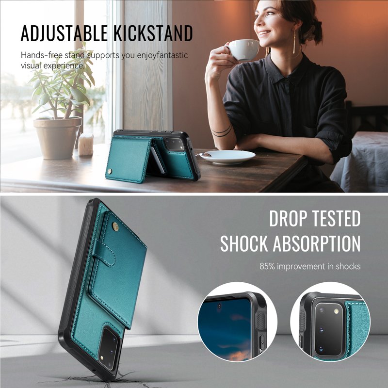 - Säker magnetisk spänne - Sidospännet ger extra säkerhet och håller dina kort och kontanter på plats under daglig användning.