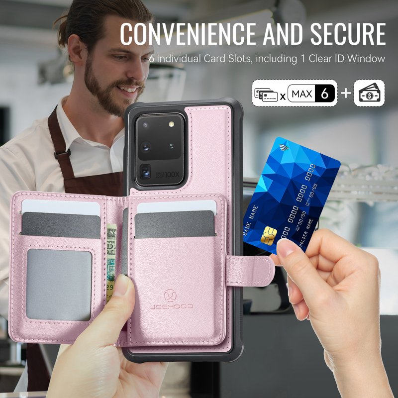 - Avtagbar kortplånbok - Den magnetiska plånboken kan enkelt tas bort från fodralet för flexibel användning, samtidigt som den behåller en säker magnetisk koppling när den är fäst.