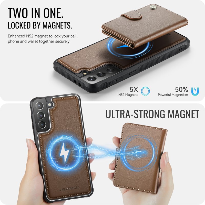 - Säker magnetisk spänne: Sidospännet ger extra säkerhet och håller dina kort och kontanter på plats.