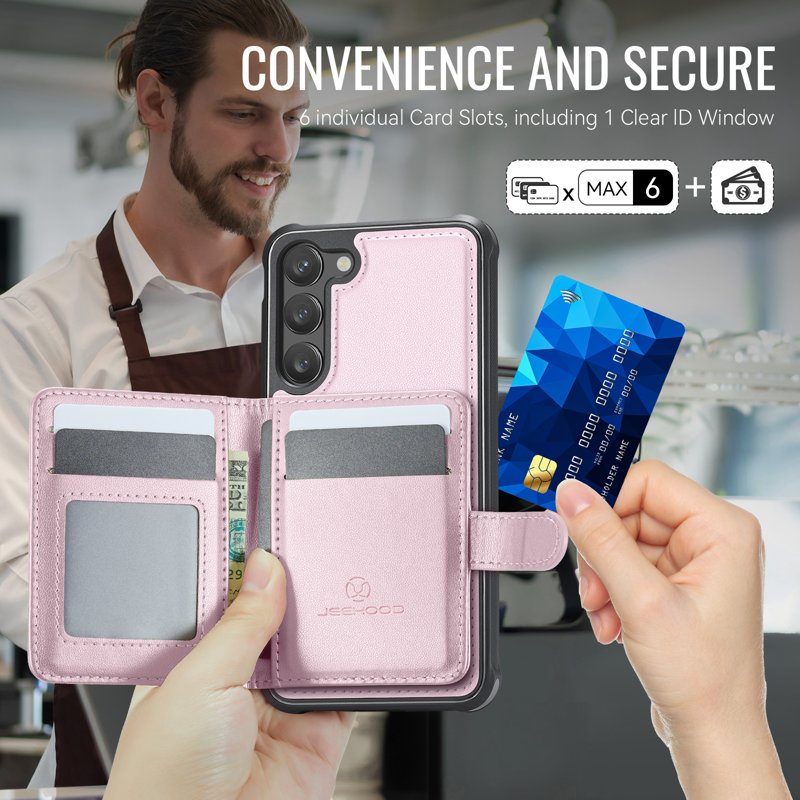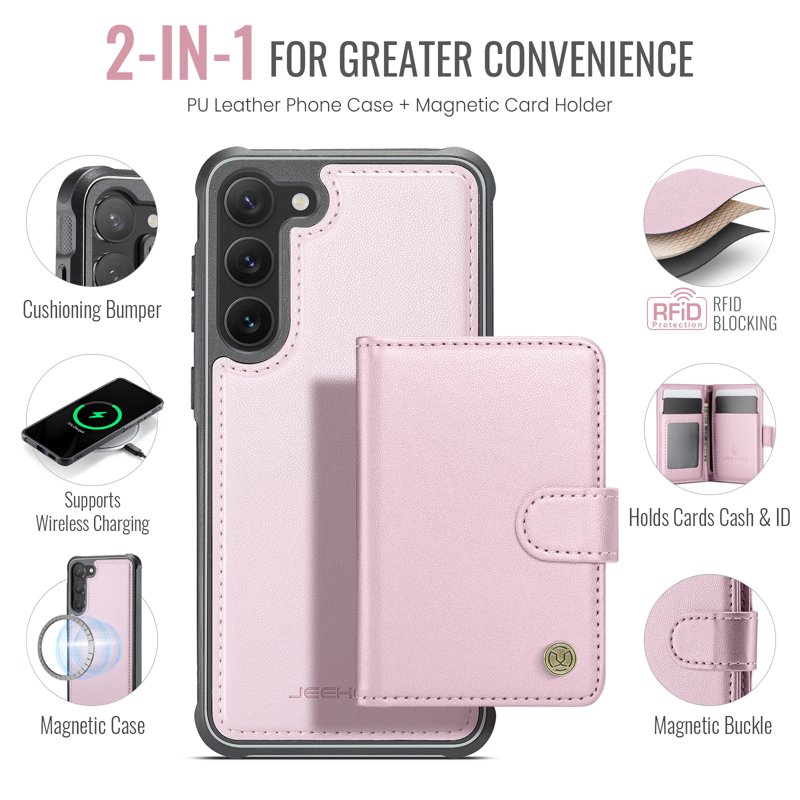 JEEHOOD J09 Fodral till Samsung Galaxy S23 RFID Läder Rosa