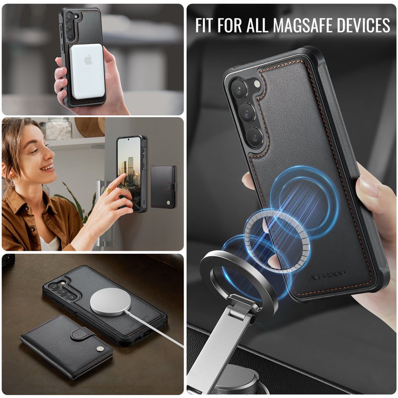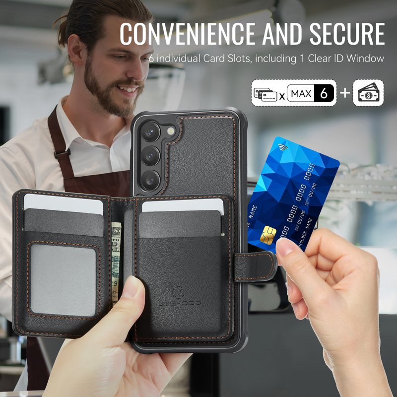 - Säker magnetisk spänne: Sidospännet håller kort och kontanter på plats under daglig användning.