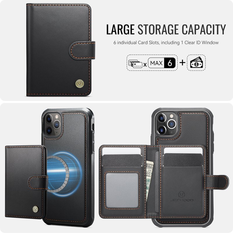- Avtagbar kortplånbok - Den magnetiska plånboken kan enkelt tas bort från telefonfodralet för flexibel användning, samtidigt som den behåller en säker magnetisk koppling när den är fäst.