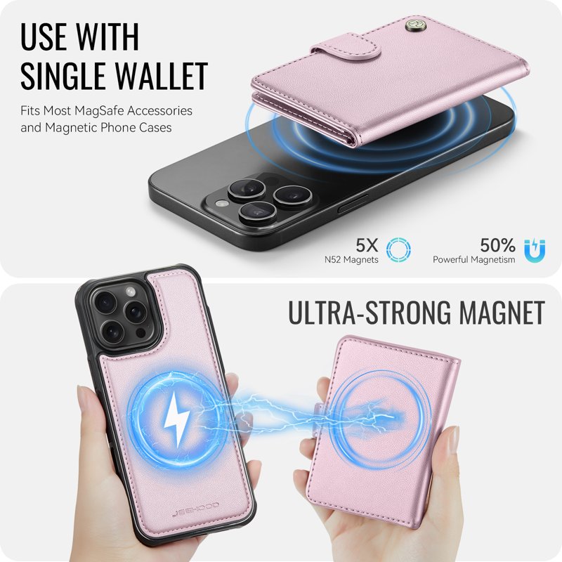 - Avtagbar kortplånbok - Den magnetiska plånboken kan enkelt tas bort från telefonfodralet för flexibel användning, samtidigt som den har en säker magnetisk koppling när den är fäst.