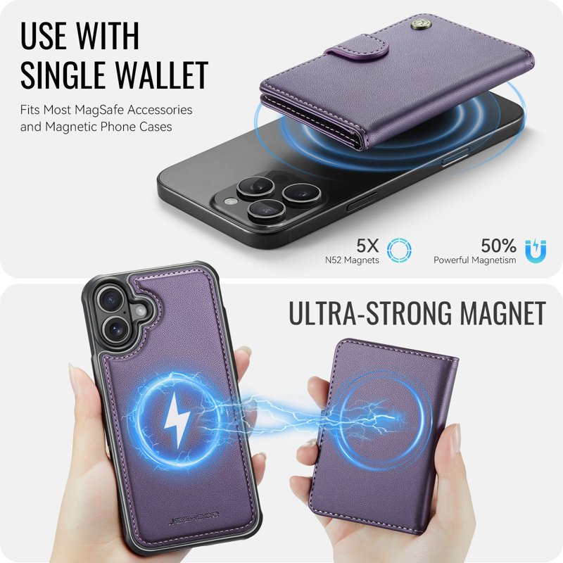 - Avtagbar kortplånbok - Den magnetiska plånboken kan enkelt tas bort från fodralet för flexibel användning, samtidigt som den behåller en säker magnetisk koppling när den är fäst.