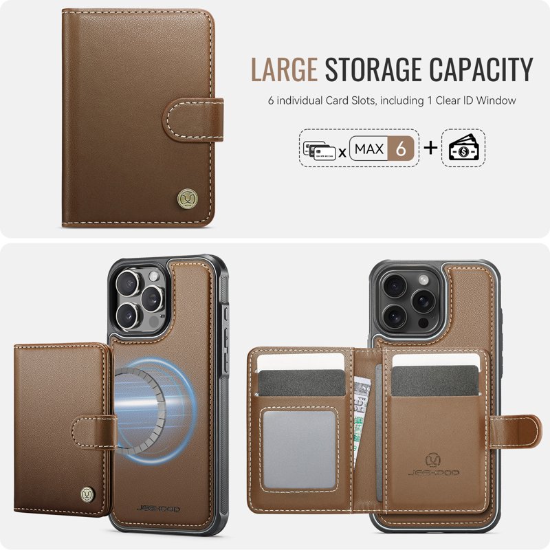 - Avtagbar kortplånbok - Den magnetiska plånboken kan enkelt tas bort från telefonfodralet för flexibel användning, samtidigt som den behåller en säker magnetisk koppling när den är fäst.