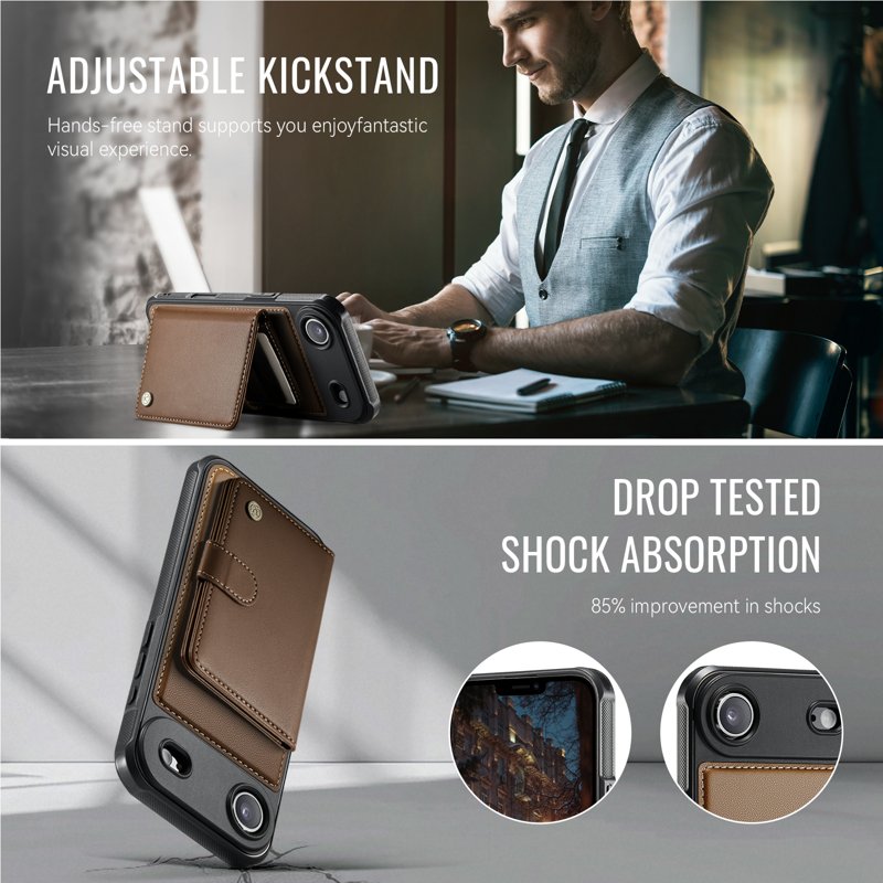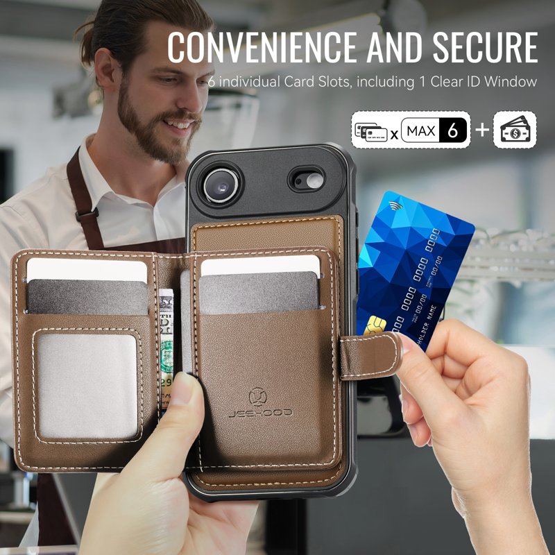 - Säker magnetisk spänne: Sidospännet håller kort och kontanter på plats under daglig användning.
